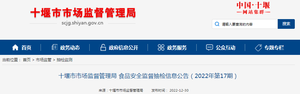 中国质量新闻网讯 近日,湖北省十堰市市场监督管理局发布食品安全监督抽检信息公告(2022年第17期)。